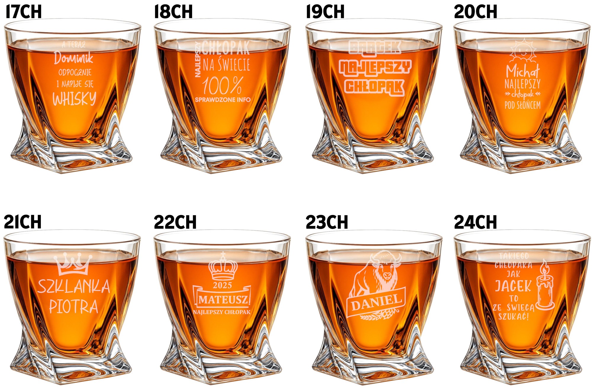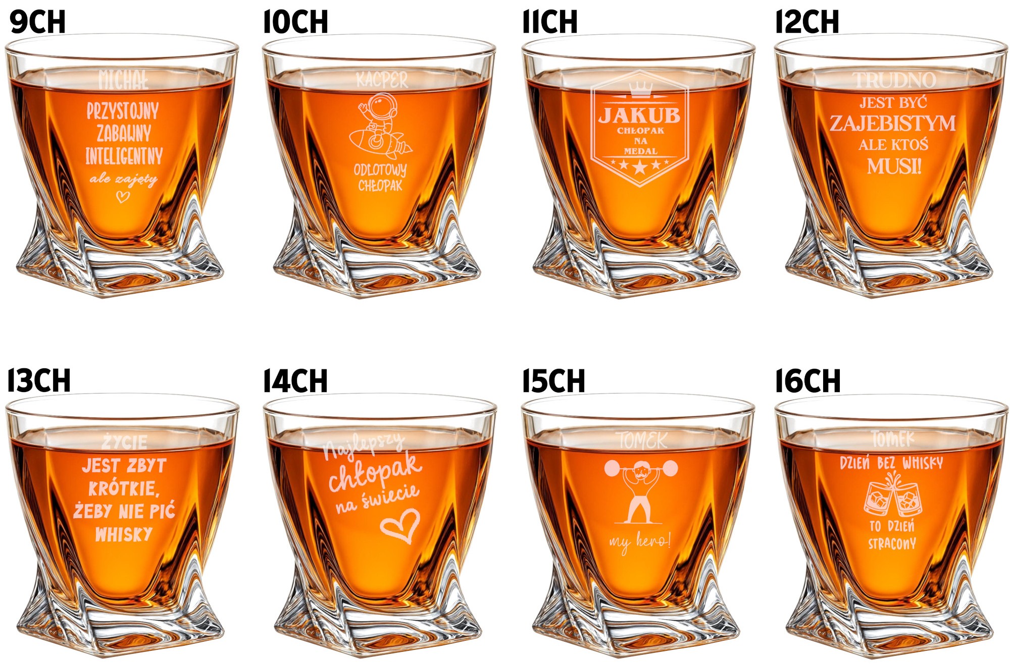 Szklanki ozdobione są delikatnym, artystycznym grawerem, który nie tylko podkreśla ich piękno, ale również czyni je idealnym pomysłem na prezent dla bliskich lub partnerów biznesowych. Istnieje możliwość realizacji właśnego pomysłu personalizacji – indywidualny grawer sprawi, że prezent będzie jeszcze bardziej wyjątkowy i osobisty.