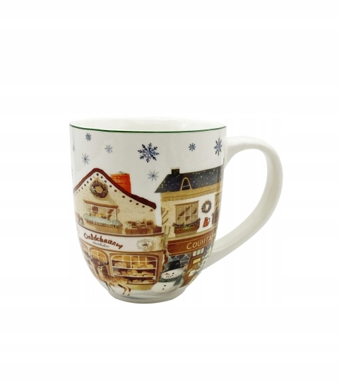 Kubek XXL CHRISTMAS CITY 2 wchodzący w skład serii Świątecznej wykonany z porcelany New Bone China, charakteryzującej się elegancką i naturalną kremowo - białą barwą z delikatnym połyskiem a także wyjątkową wytrzymałością przy zachowaniu lekkości i delikatności.