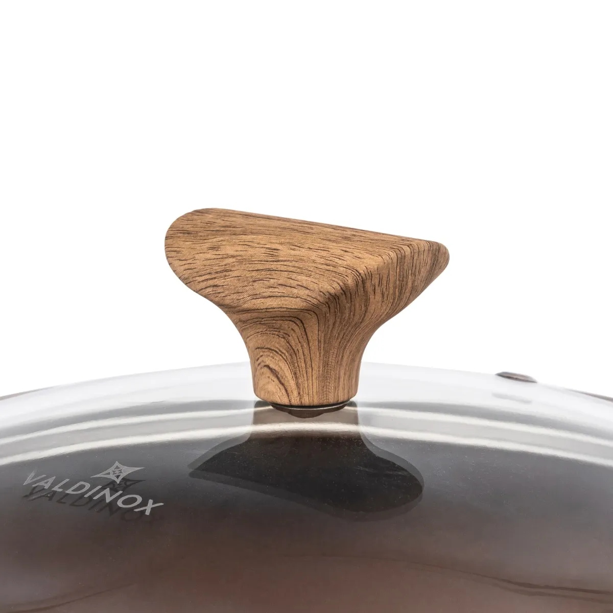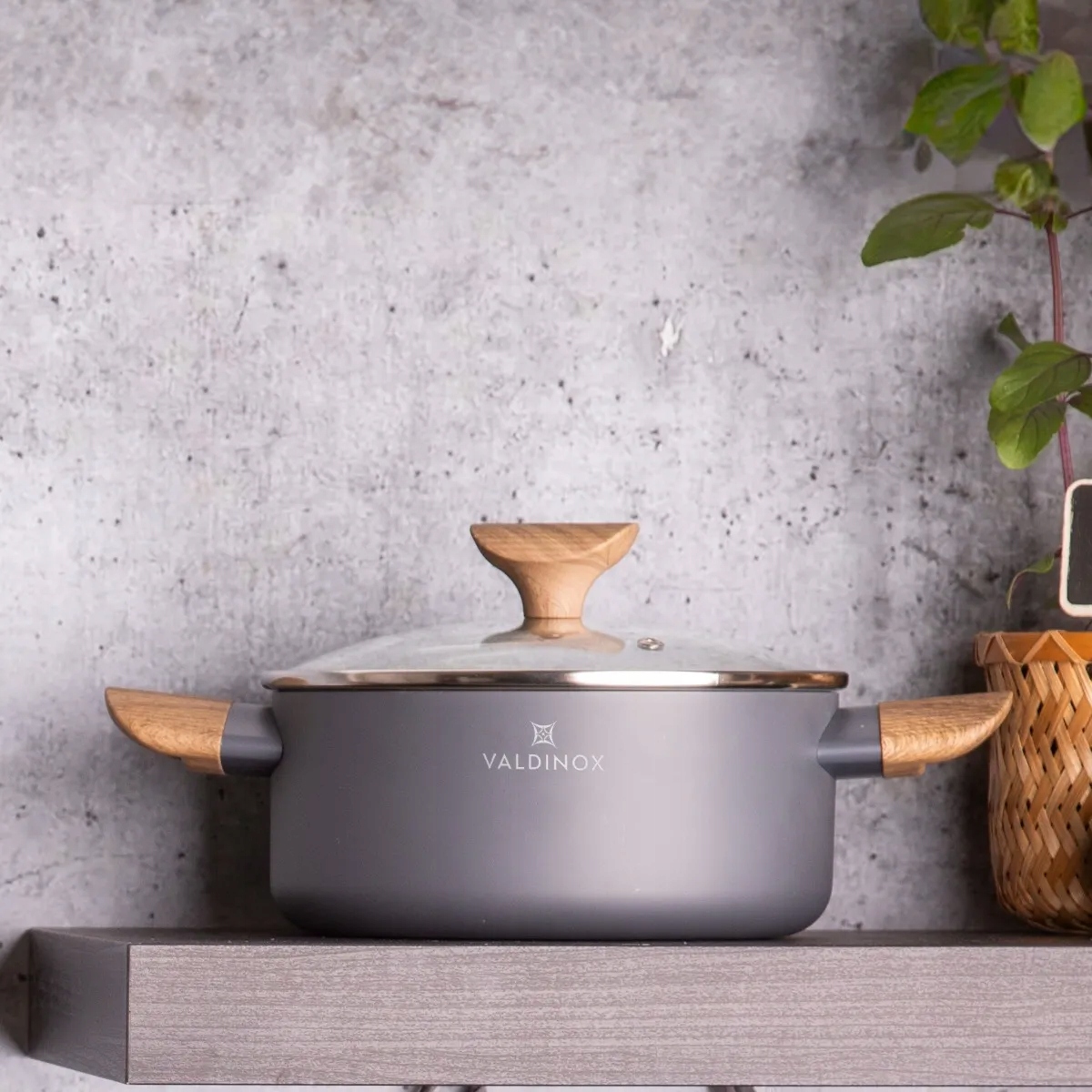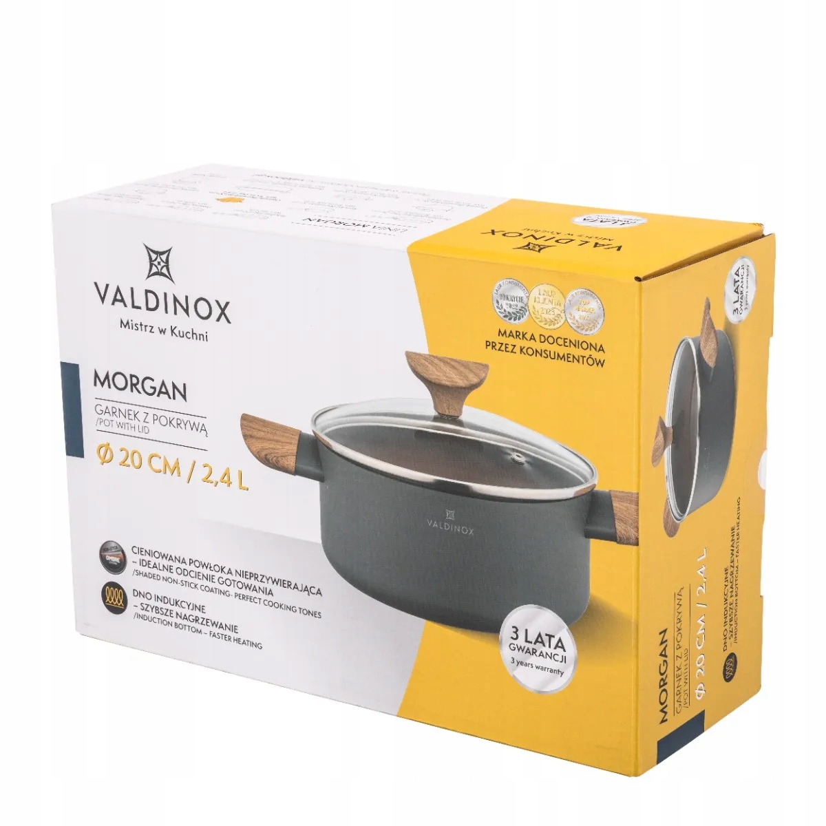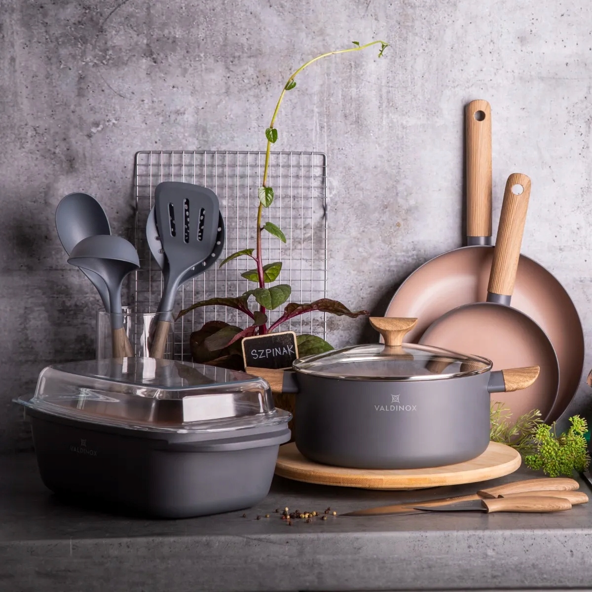 Kolekcja Valdinox Morgan to esencja nowoczesnej elegancji połączona z funkcjonalnością, która spełnia oczekiwania nawet najbardziej wymagających domowych kucharzy. Harmonijne połączenie ciepłego odcienia ombre z detalami w kolorze drewna wprowadza do kuchni przytulność i szyk. Garnki, patelnie, czajnik i akcesoria tworzą spójny, designerski zestaw, który doskonale prezentuje się zarówno na kuchennym blacie, jak i na stole. Gotuj z przyjemnością, serwuj z dumą – z Valdinox Morgan gotowanie staje się prawdziwą przyjemnością.