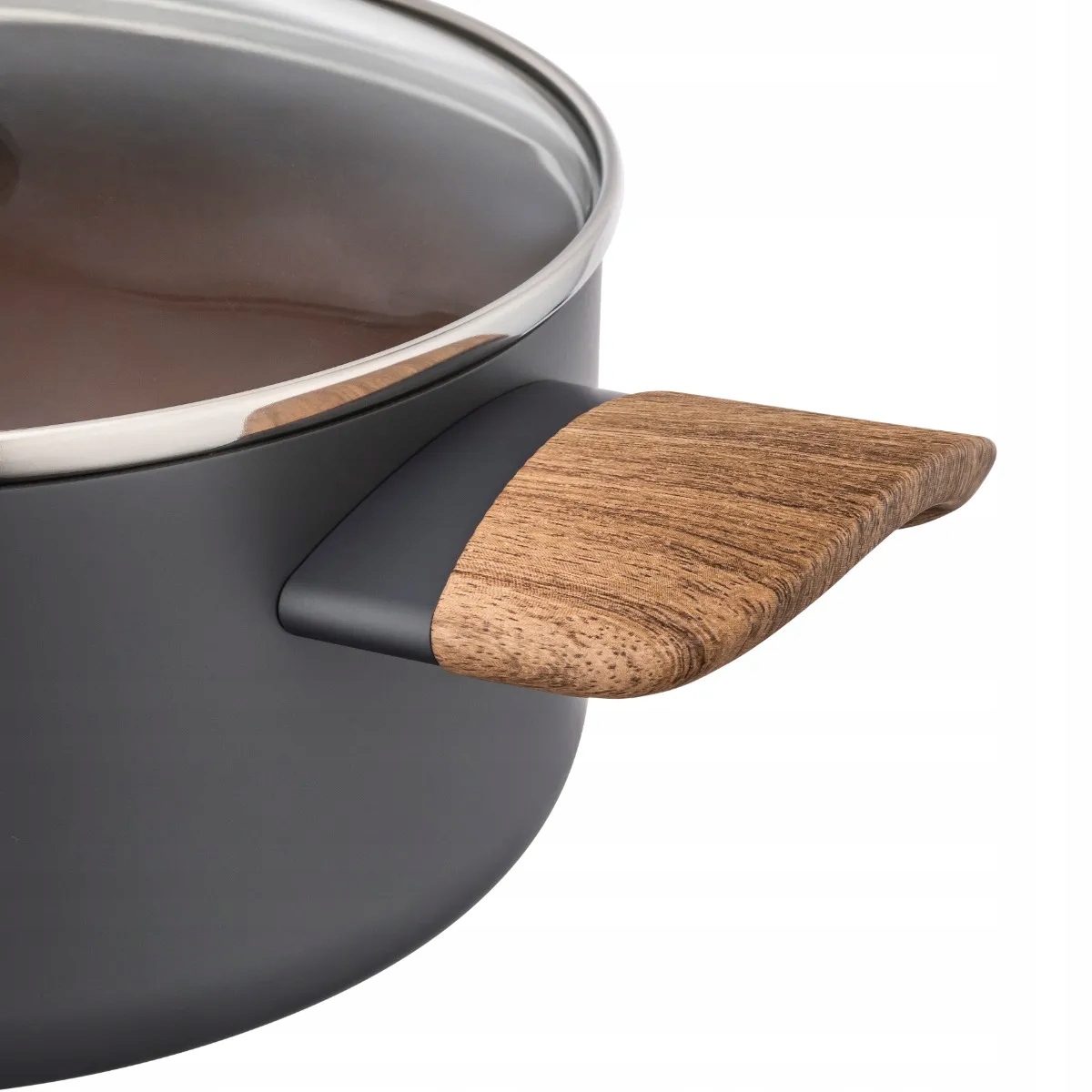 Informacje dodatkowe: możliwość mycia w zmywarce, możliwość używania na kuchni ceramicznej, możliwość używania na kuchni elektrycznej, możliwość używania na kuchni gazowej, możliwość używania na kuchni indukcyjnej, nienagrzewające się uchwyty, pokrywka w zestawie