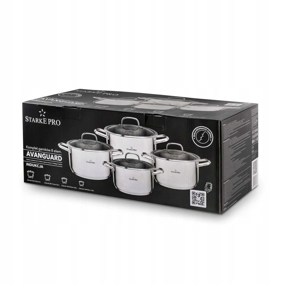 Garnki Starke Pro Avanguard – zestaw 8-elementowy (4 garnki z pokrywkami)