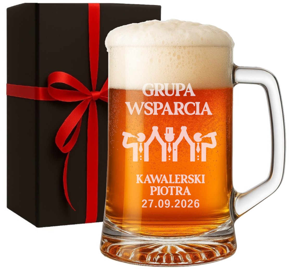 Szklany kufel do piwa 500ml na wieczór kawalerski z grawerem w pudełku