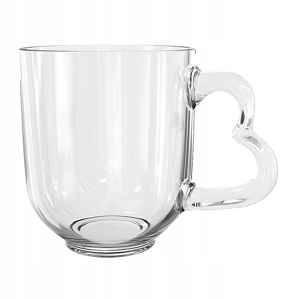 Kubek szklany 310ml gładki z uchem w kształcie serca
