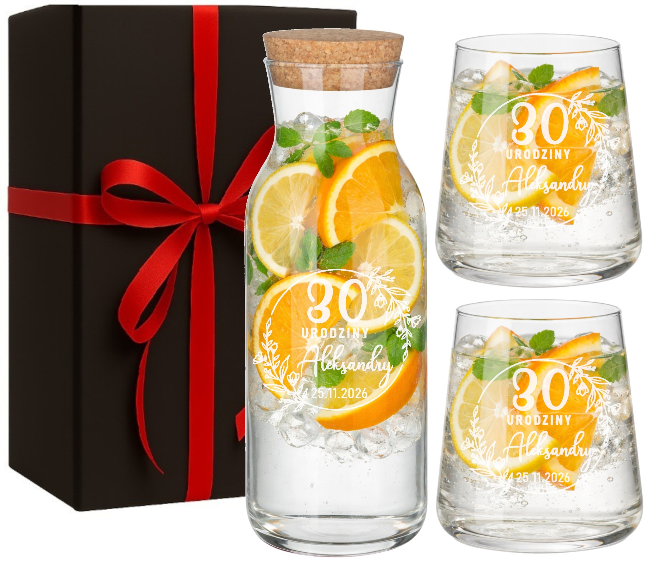 Zestaw do wody soku z grawerem Logo TWÓJ NAPIS Karafka i 2 szklanki Prezent