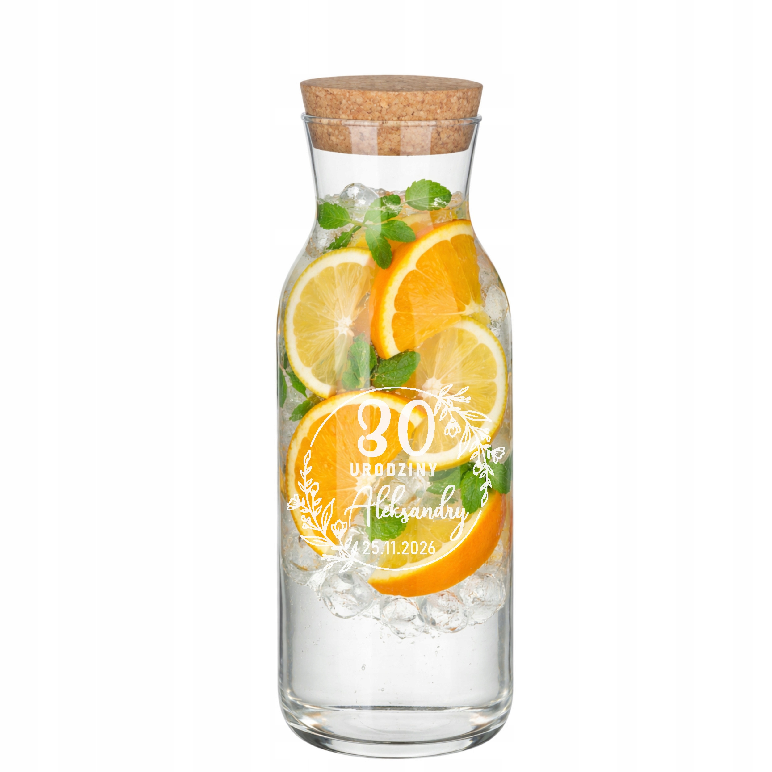 Karafka z korkiem do wody soku wina z grawerem Logo TWÓJ NAPIS 1L Prezent