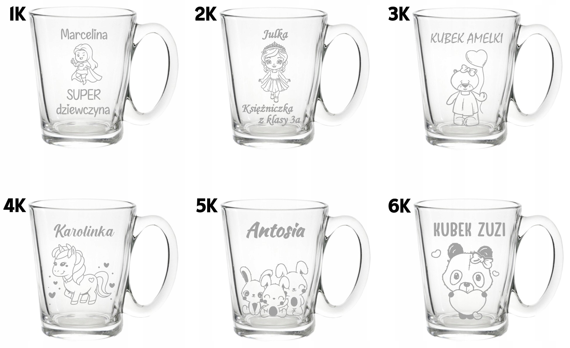 Personalizowany wzór z bajkowymi motywami oraz możliwością dodania imienia sprawia, że kubek staje się wyjątkową pamiątką.