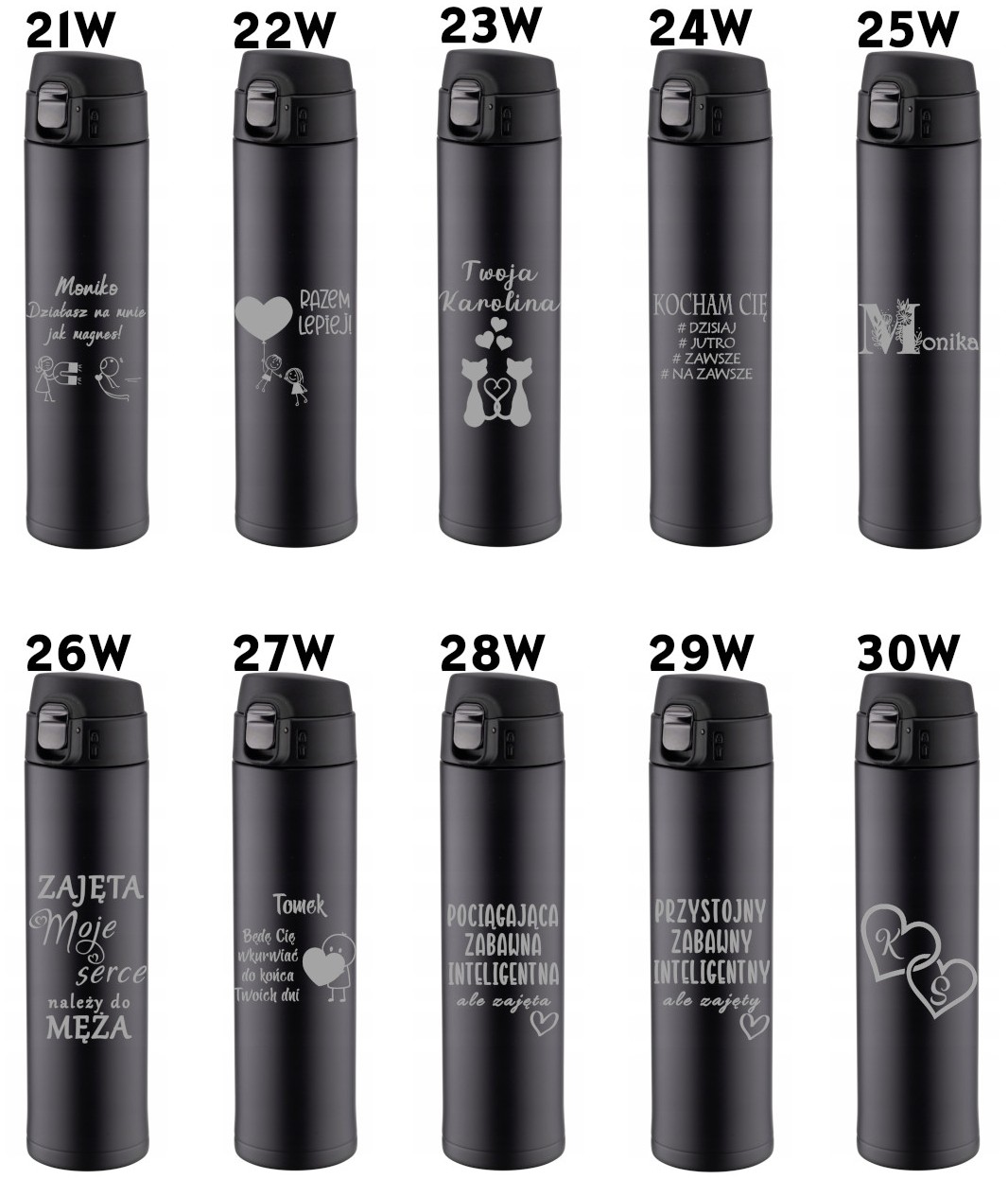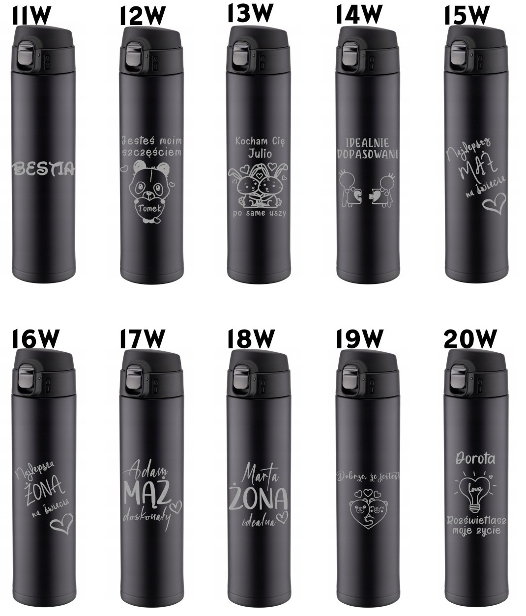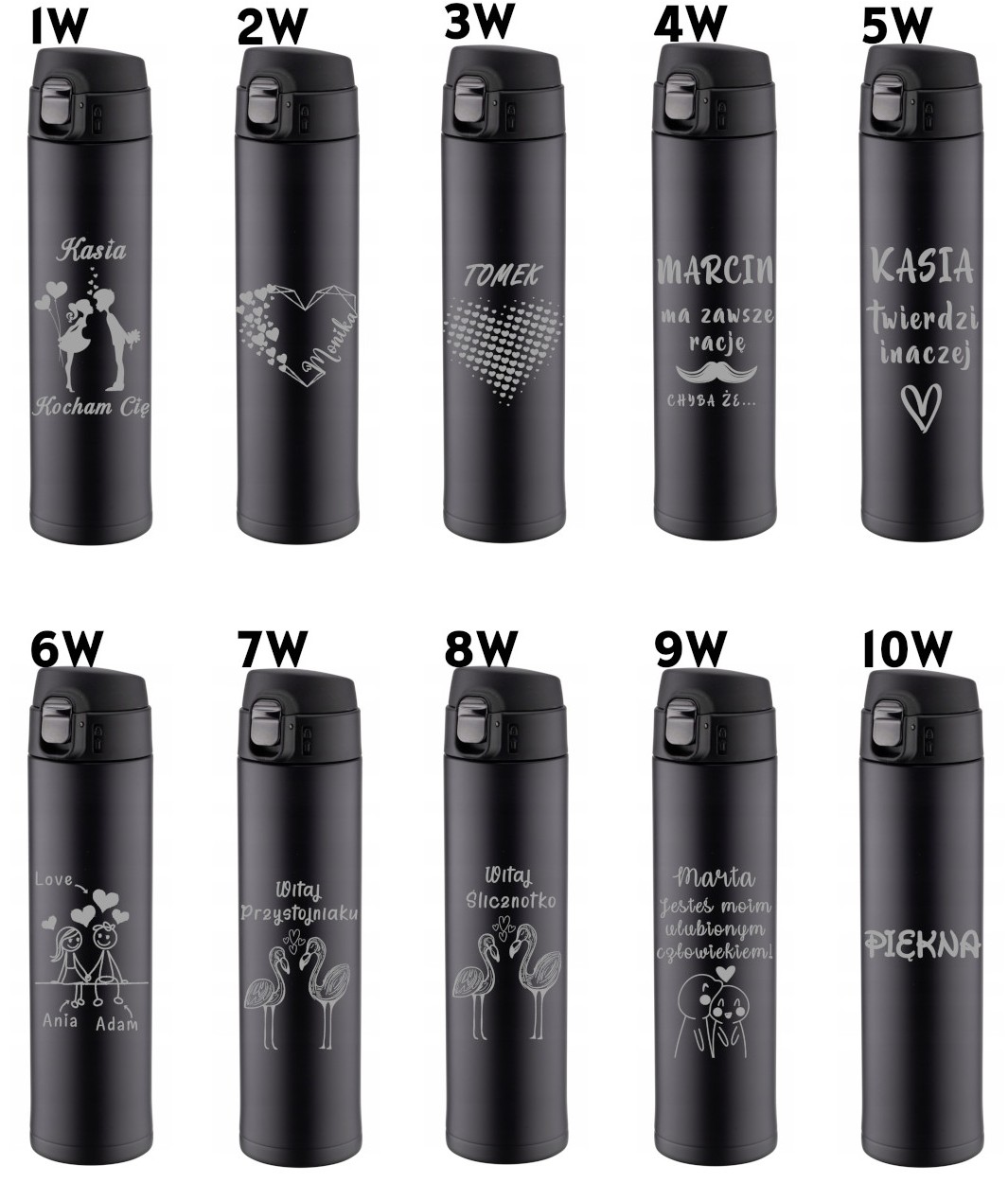 Prosimy o podanie numeru wybranego wzoru oraz imion w wiadomości do sprzedającego. Na życzenie wykonamy inny, wybrany przez Państwa grawer.Zaskocz bliską osobę wyjątkowym, praktycznym prezentem – wybierz termos z osobistym grawerem!
