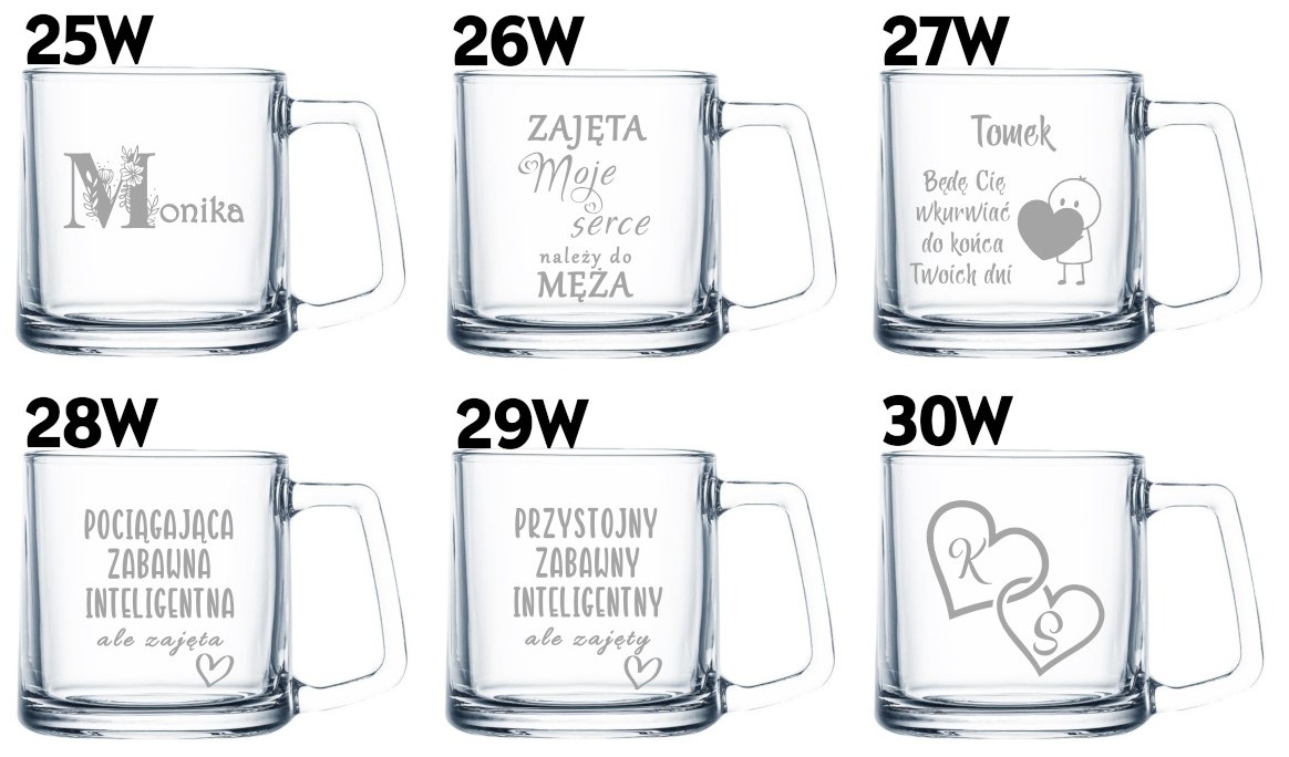Do wyboru gotowe walentynkowe wzory lub możliwość stworzenia własnego projektu graweru.