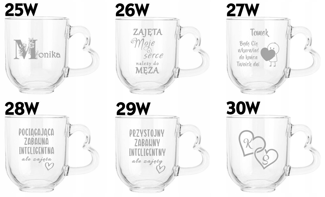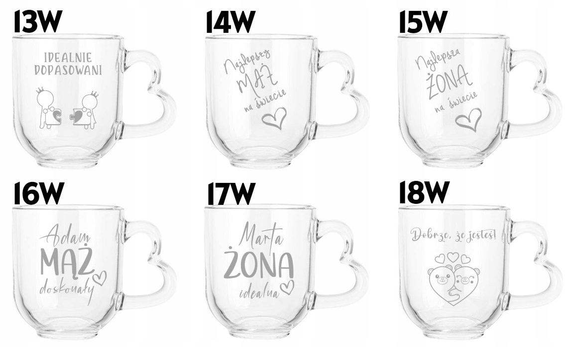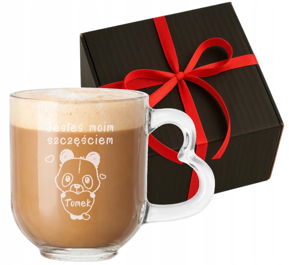 Szklany kubek z uszkiem w kształcie serca z grawerem Romantyczny prezent na Walentynki