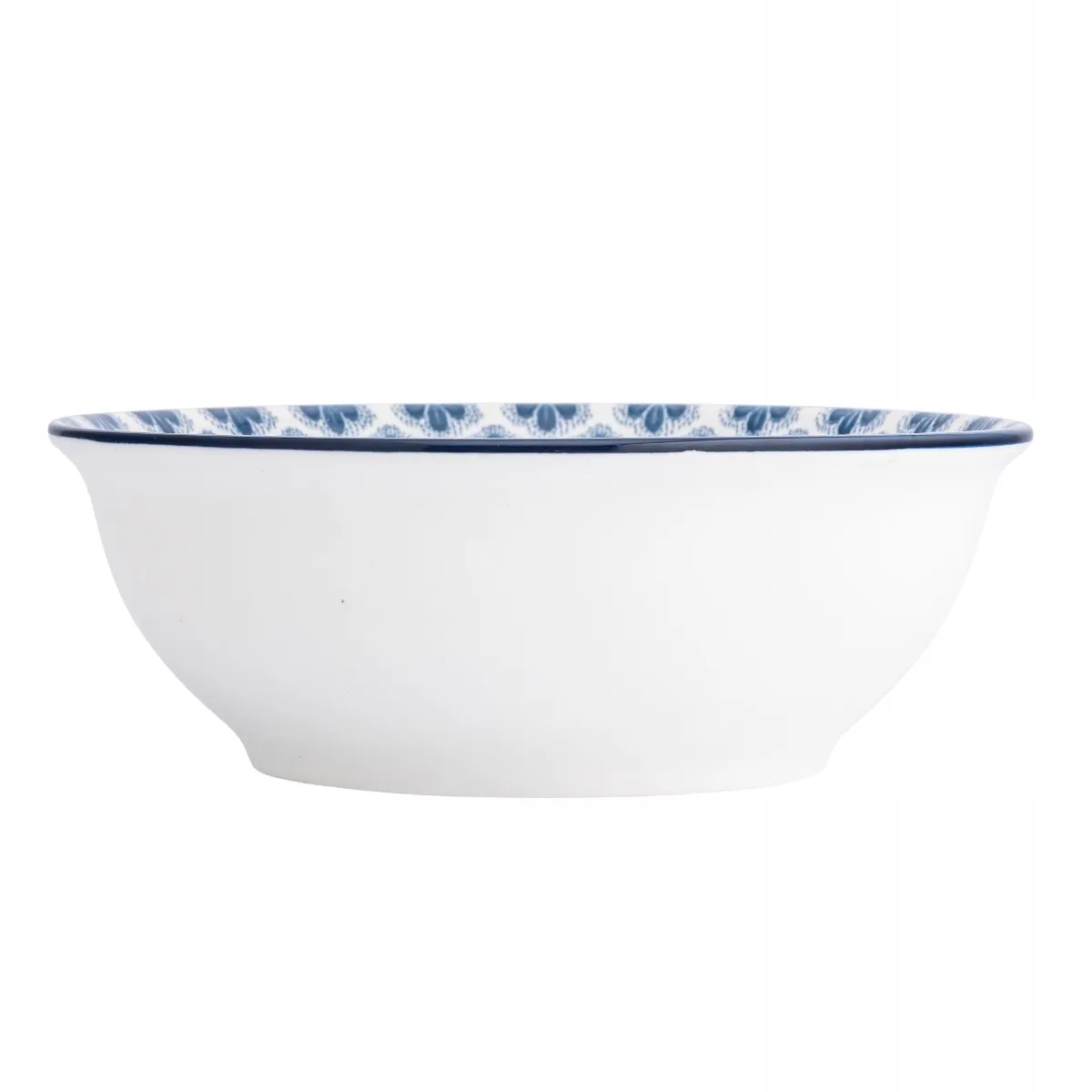 Kolekcja Arabeska to propozycja dla tych, którzy lubią, gdy codzienne serwowanie nabiera wyjątkowego charakteru. Porcelanowa miska o średnicy 17 cm i pojemności 700 ml zachwyca dekoracyjnym, powtarzalnym motywem w odcieniach granatu, który subtelnie zdobi wnętrze naczynia. Klasyczna biel zewnętrznej powierzchni pięknie równoważy bogatszy wzór, tworząc spójną i elegancką całość.
