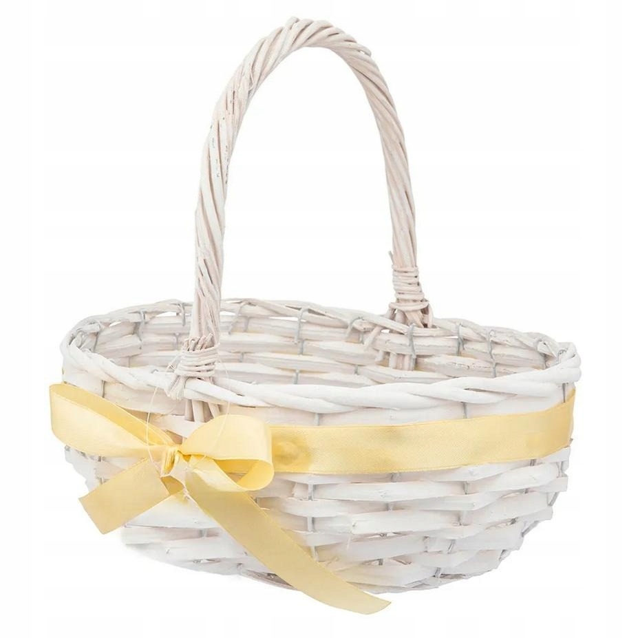 Koszyk wielkanocny biały z żółtą tasiemką 27 x 19 x 24 cm