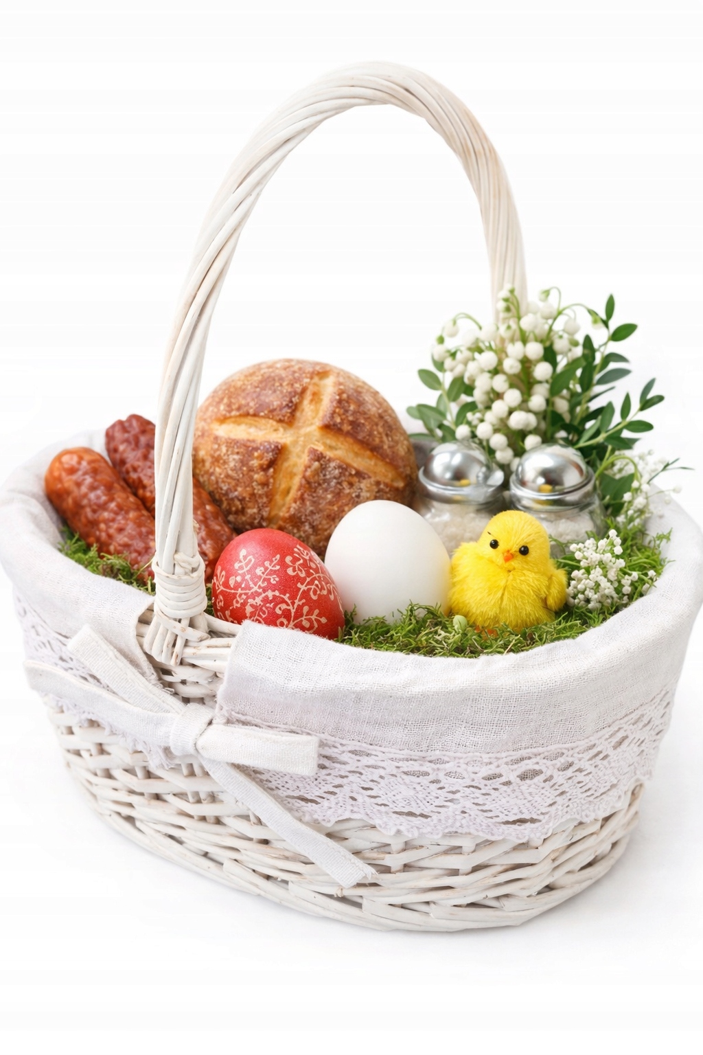 Koszyczek wielkanocny na święconkę owalny z białą wyściółką