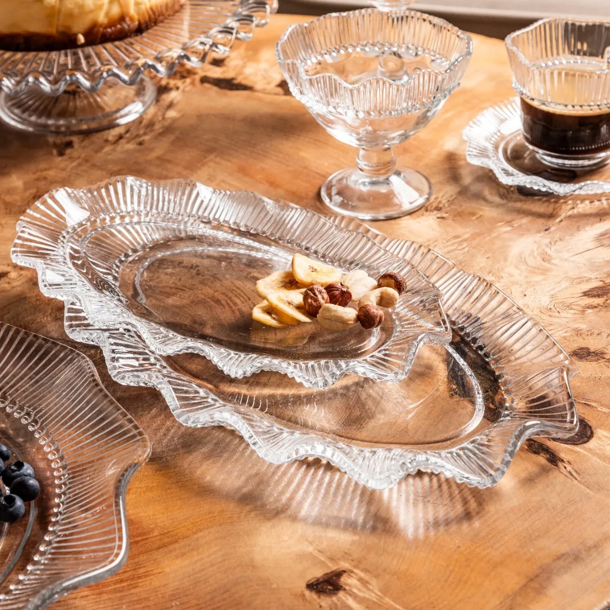 Każda potrawa zasługuje na odpowiednią oprawę, a ten szklany półmisek o eleganckim kształcie i zdobionych brzegach sprawi, że nawet najprostsze danie nabierze wyjątkowego charakteru. Idealny na rodzinne obiady, świąteczne uczty czy eleganckie przyjęcia – będzie nie tylko praktycznym, ale i dekoracyjnym elementem Twojej zastawy.