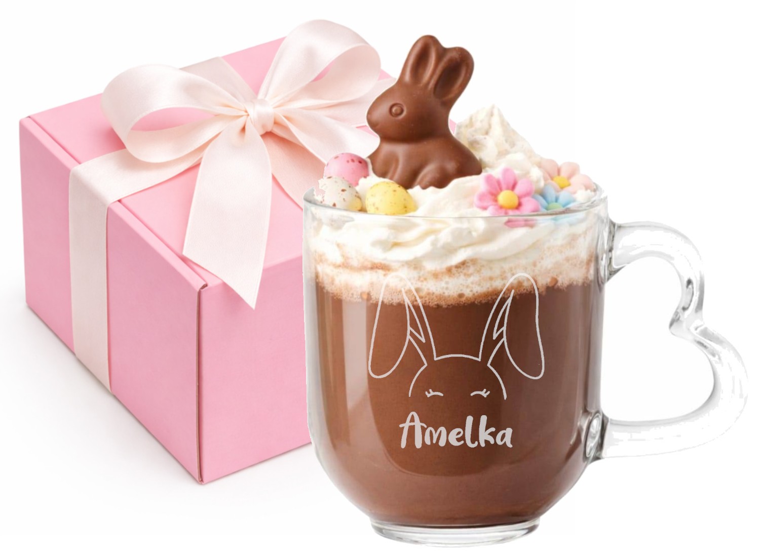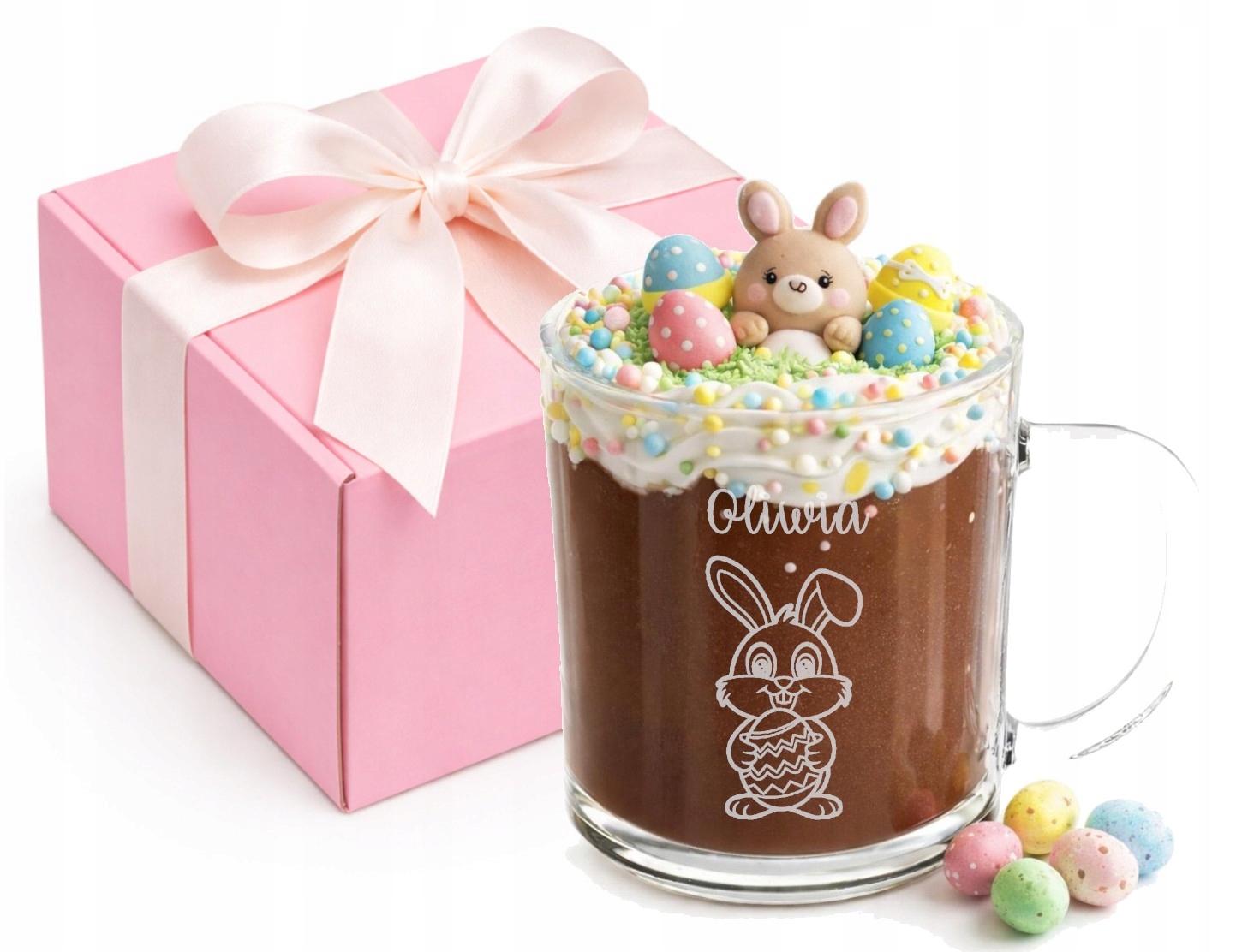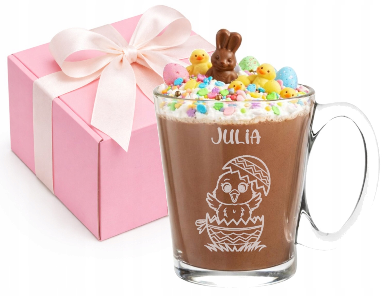 Szklany Kubek z grawerem Serce Twoje Imię Prezent dla dzieci Wielkanoc