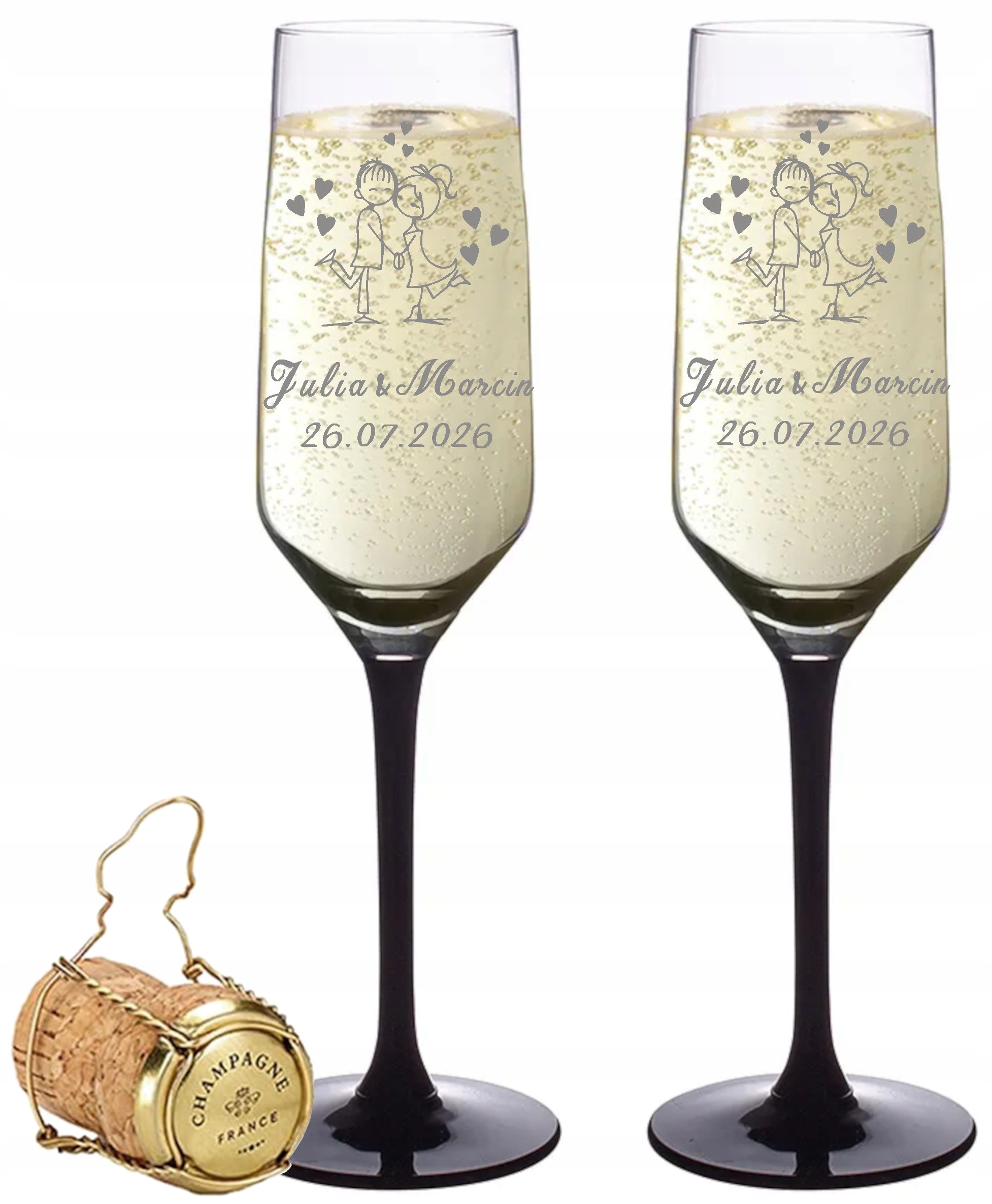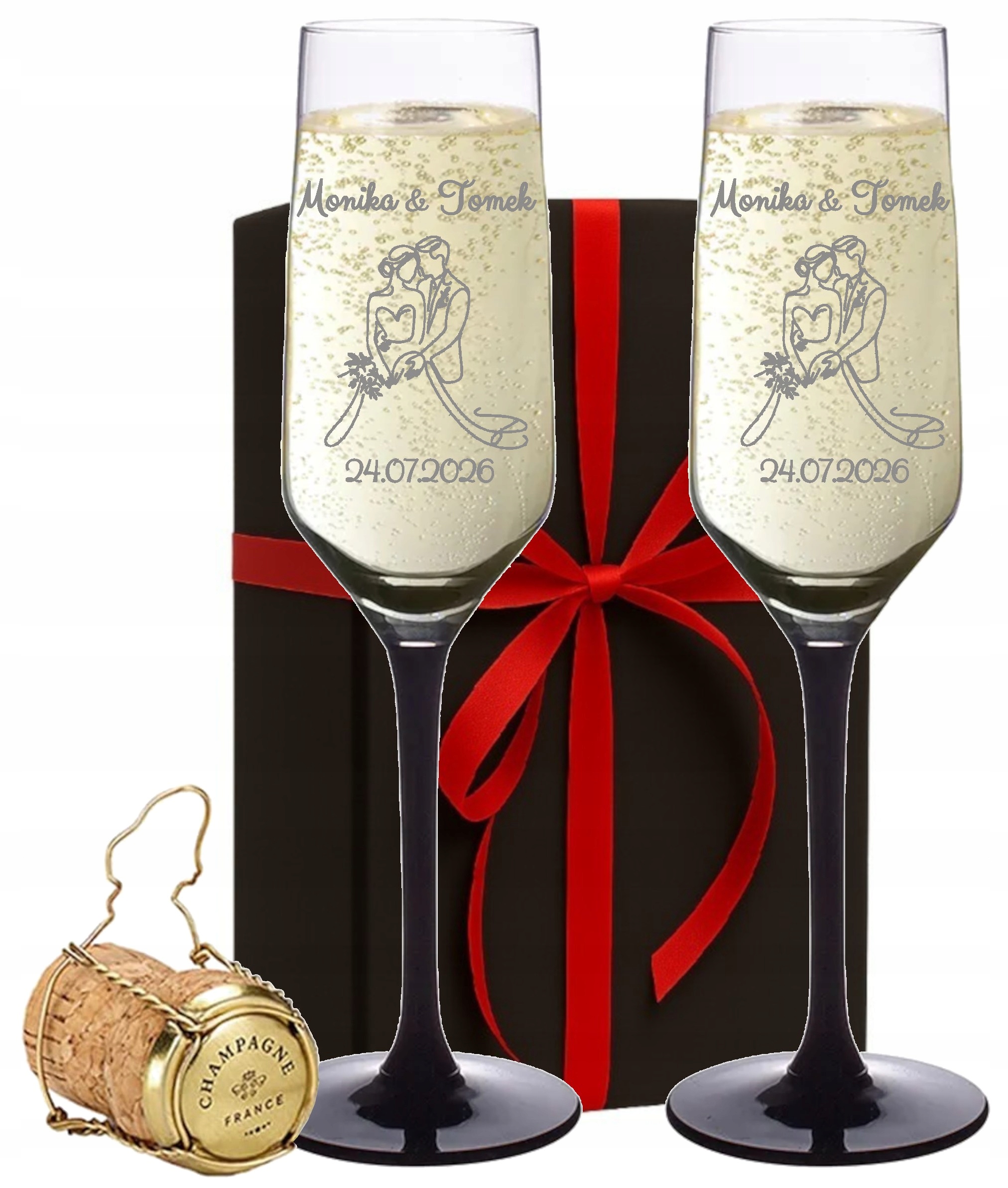 Kieliszki do szampana z Grawerem dla Pary Wesele Czarna Nóżka Różne Wzory