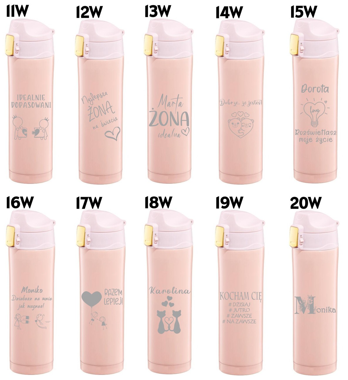 Personalizowany kubek termiczny z TWOIM NAPISEM w kolorze jasnoróżowym – idealny prezent na Walentynki