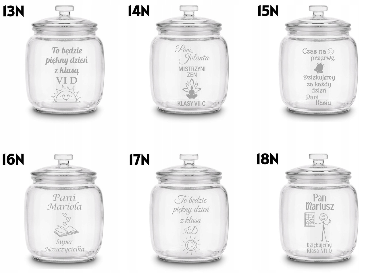 ✔️ Personalizowany grawer – wyjątkowy akcent Zamień zwykły słoik w niezapomnianą pamiątkę! Dzięki grawerowi możesz dodać imię nauczyciela, dedykację, a nawet własny wzór. Do wyboru przygotowaliśmy gotowe projekty, ale możesz też utworzyć swój tekst lub grafikę – efekt będzie unikalny i niepowtarzalny.