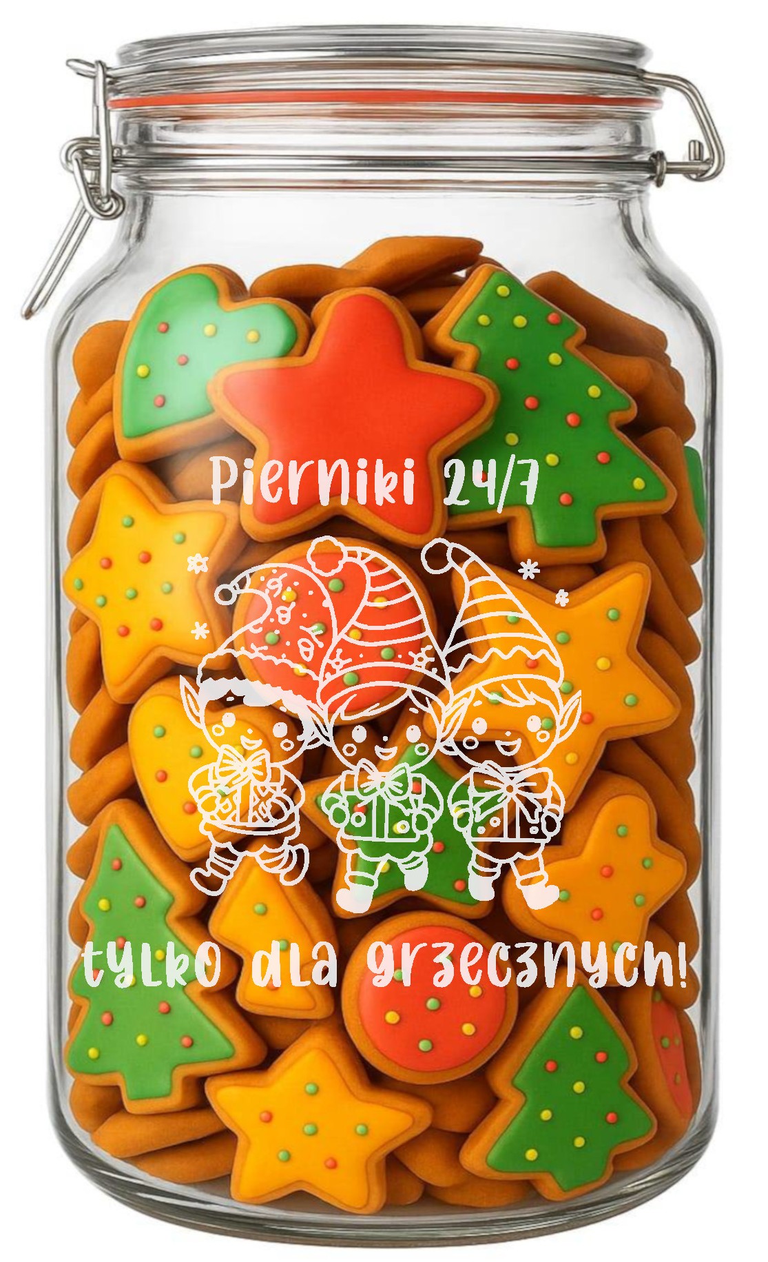 Dzięki personalizowanemu grawerowi pojemnik zyskuje wyjątkowy charakter – może stać się niepowtarzalnym akcentem na świątecznym stole lub prezentem z duszą dla bliskiej osoby. Transparentne szkło pięknie eksponuje zawartość, wprowadzając do wnętrza ciepły, przytulny klimat Świąt.