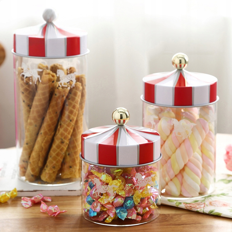 ⭐ Estetyczny wygląd - Słoik posiada atrakcyjny wygląd, przypominający cyrkowy namiot, co nadaje mu unikalny, dekoracyjny styl.