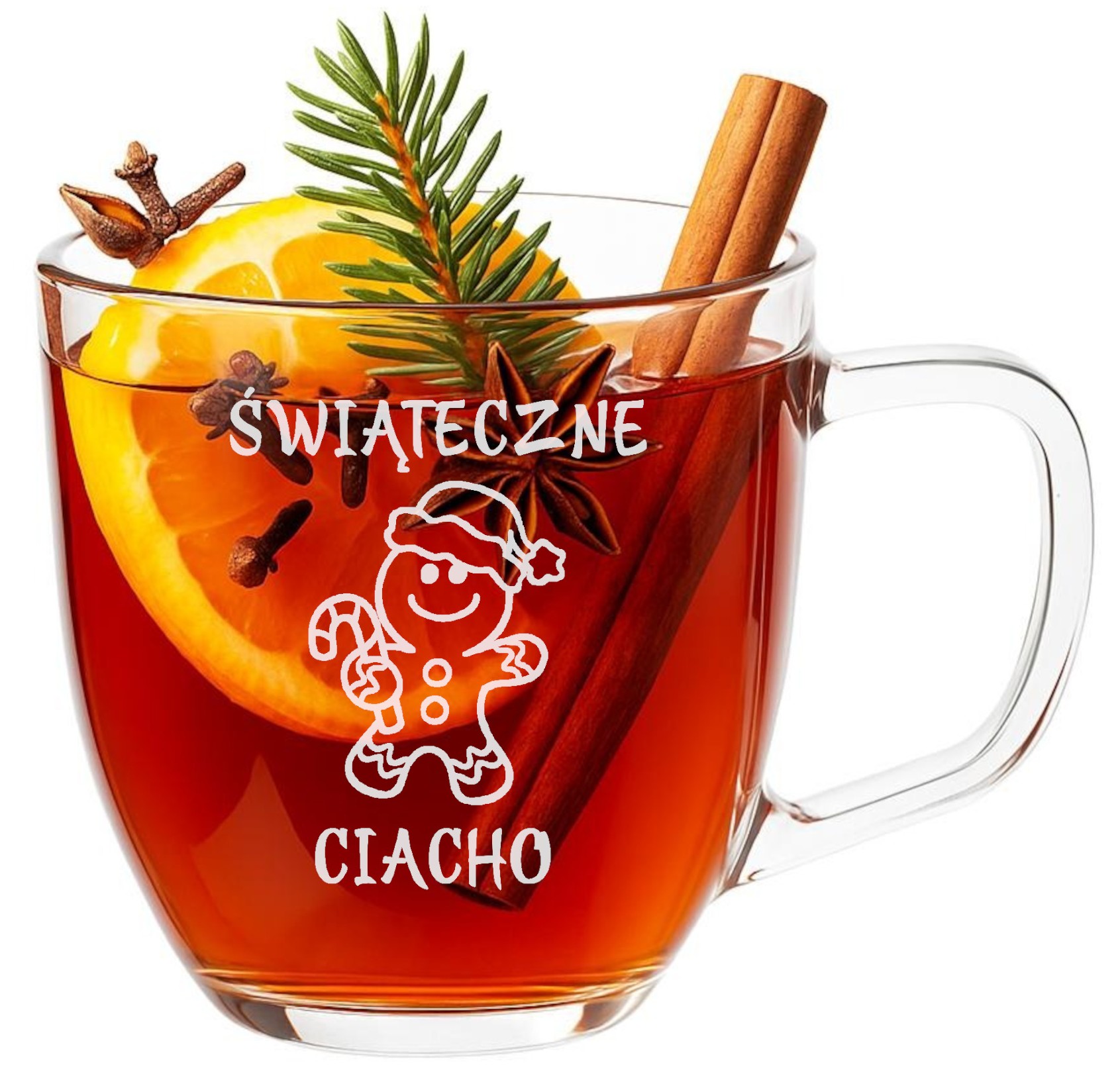 Podaruj wyjątkowy prezent, który łączy elegancję i osobisty charakter! Duży szklany kubek o pojemności 420 ml to doskonały wybór na świąteczne, zimowe wieczory!