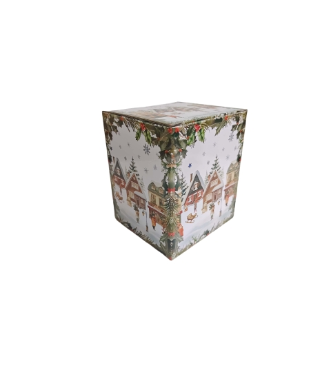 Linia dekorowana urokliwym motywem malowniczej wioski o ciepłym i rodzinnym charakterze. Migoczące gwiazdy w tle tworzą wyjątkową i magiczną atmosferę. Całość otoczona elegancką ramką z gałązek ostrokrzewu, wprowadza do kompozycji akcenty typowe dla świątecznego wystroju.