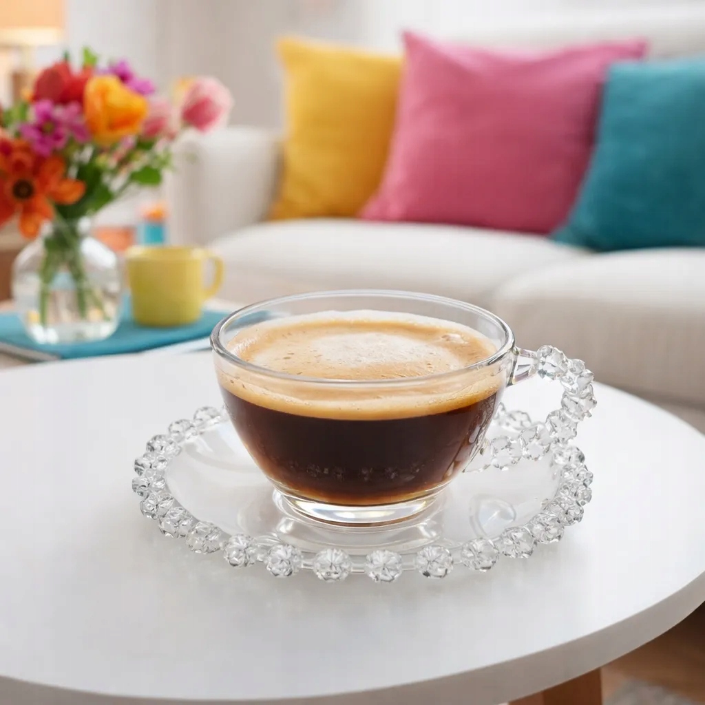 Są momenty, kiedy filiżanka kawy lub herbaty staje się małym rytuałem, a odpowiednia oprawa potrafi nadać mu wyjątkowy charakter. Szklana filiżanka Bloom o pojemności 200 ml ze spodkiem zachwyca subtelną formą i dekoracyjnymi detalami inspirowanymi motywem kwiatowym. Przezroczyste szkło pięknie eksponuje napój, a delikatne zdobienia na spodku i uchu filiżanki dodają całości elegancji i lekkości, idealnej na spokojne poranki lub popołudniowe spotkania przy stole.