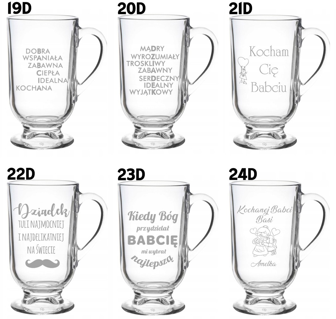 Największą wartością tej szklanki jest indywidualny grawer. Wygrawerujemy imię, dedykację, świąteczny cytat, motyw zimowy, logo firmy lub własną grafikę. Do wyboru są zarówno gotowe, świąteczne wzory graweru, jak i pełna personalizacja. Dzięki temu każda szklanka staje się niepowtarzalnym prezentem z „duszą”.