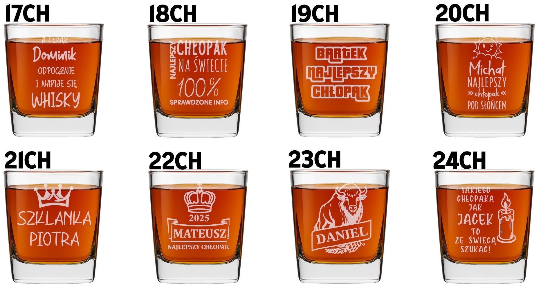 Na Dzień Chłopaka liczy się oryginalność – dlatego każda szklanka otrzymuje spersonalizowany grawer, który nadaje jej unikalny charakter. Możesz wybrać jeden z gotowych wzorów (z imieniem, datą czy grafiką), a jeśli masz własny pomysł – daj nam znać, a stworzymy coś specjalnego.