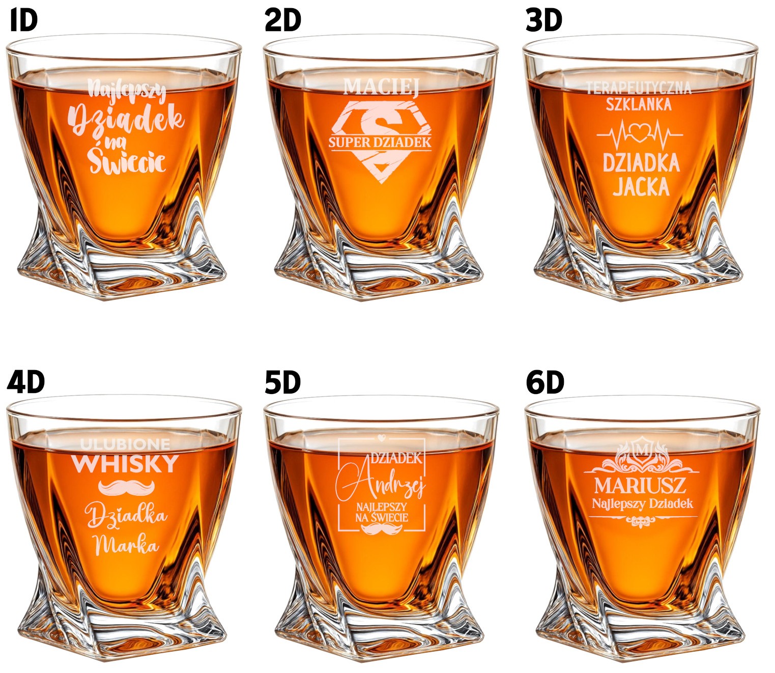 Największą zaletą jest możliwość pełnej personalizacji. Wybierz jeden z gotowych projektów lub dopasuj go do siebie – możesz zmienić imię, datę, dedykację, napis, logo lub grafikę. Na życzenie przygotujemy również całkowicie indywidualny projekt, stworzony specjalnie dla Ciebie. To Ty decydujesz, co znajdzie się na szklance – dzięki temu każdy egzemplarz jest jedyny w swoim rodzaju.