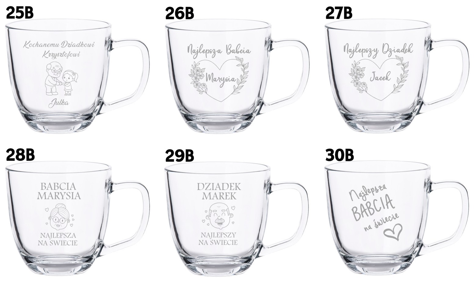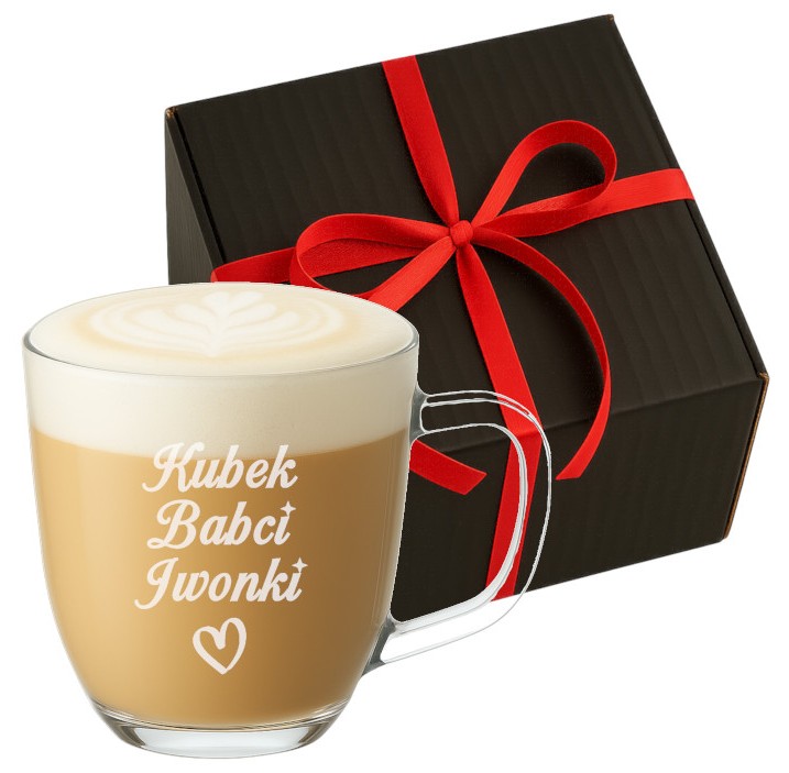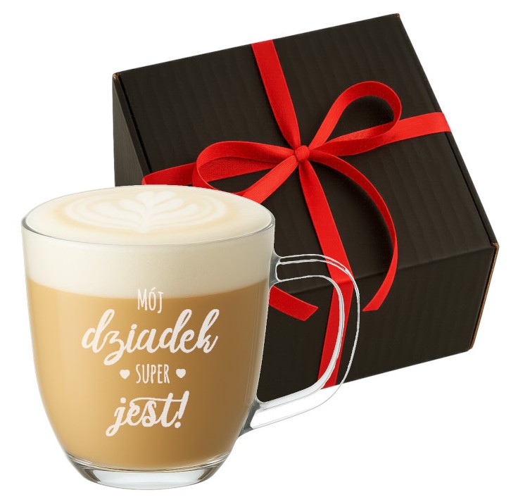 Duży szklany kubek z grawerem w pudełku – idealny prezent na Dzień Babci i Dziadka!