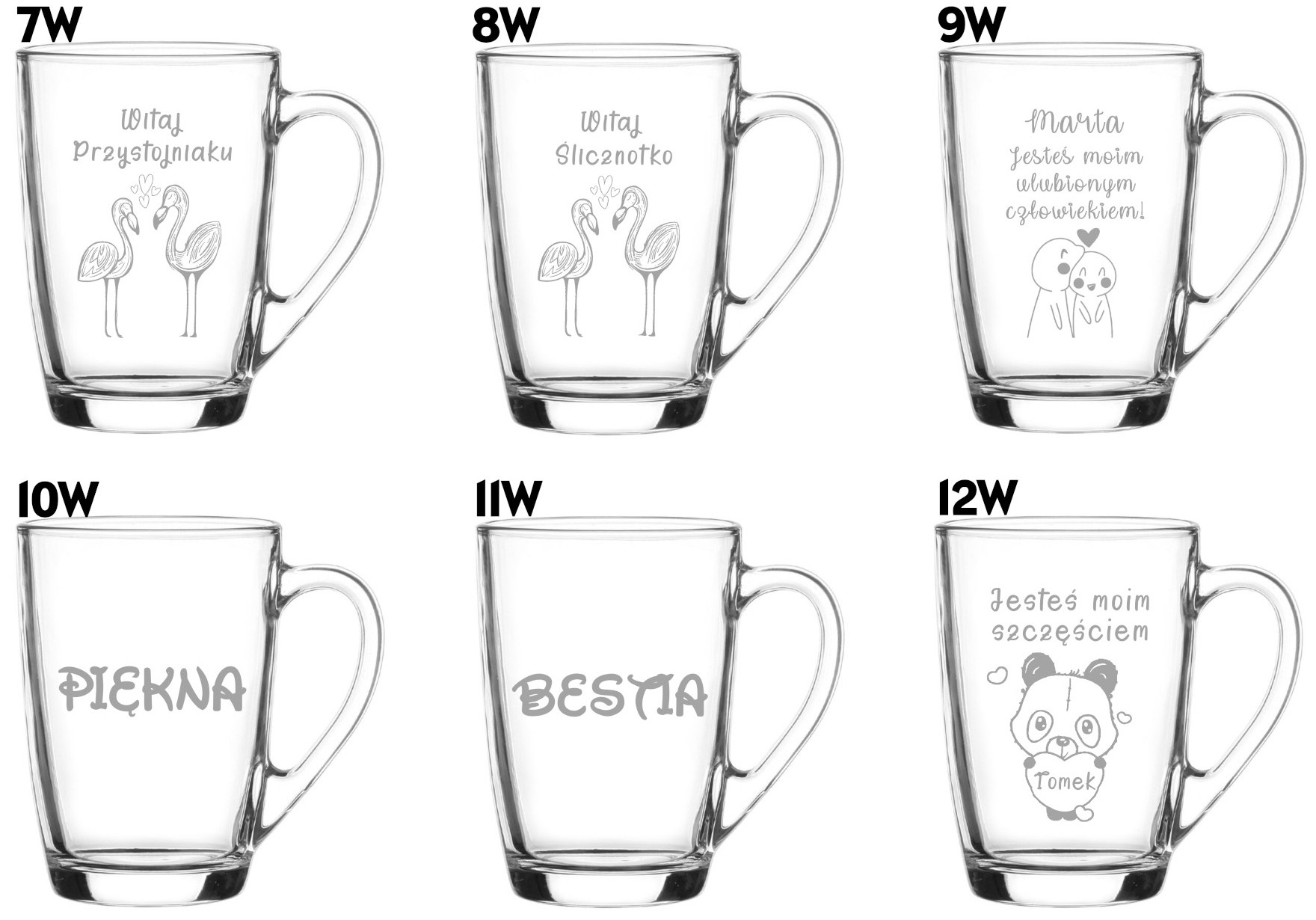 Istnieje możliwość wykonania graweru po prawej lub lewej stronie kubka – zgodnie z preferencją osoby trzymającej szklankę w dłoni.