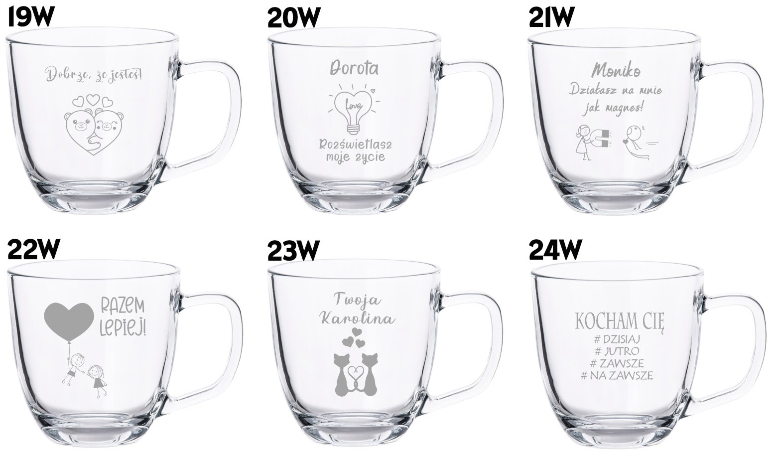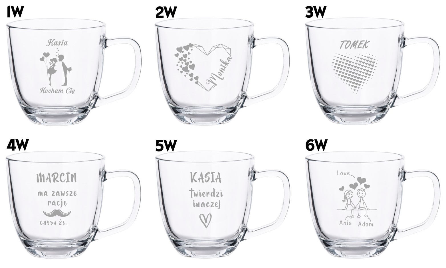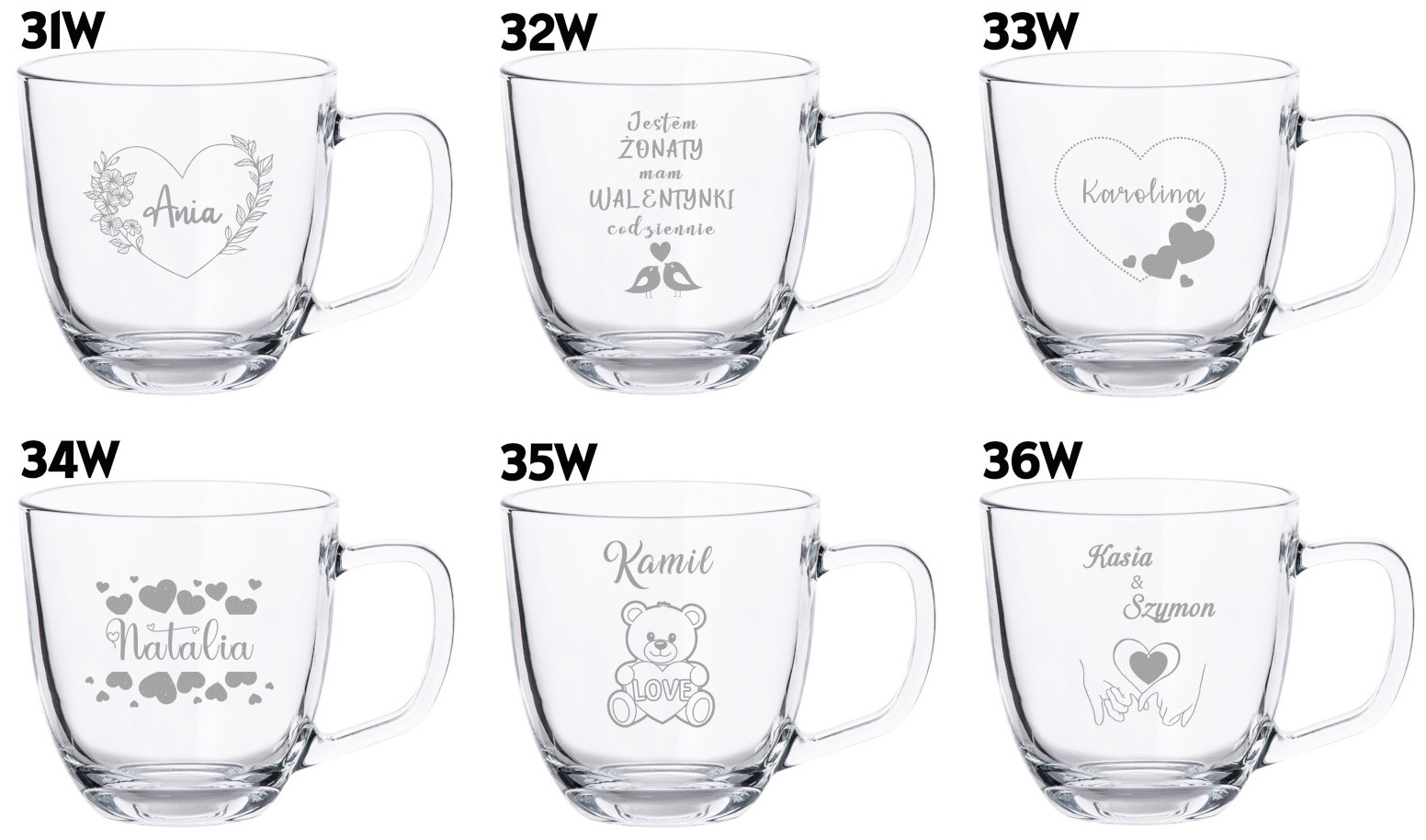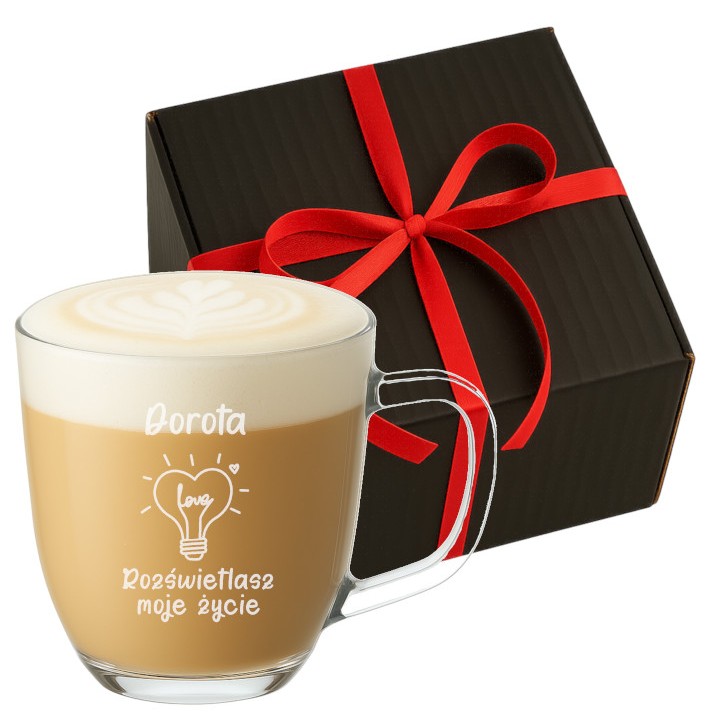 Duży szklany kubek z grawerem w pudełku – idealny prezent na Walentynki!