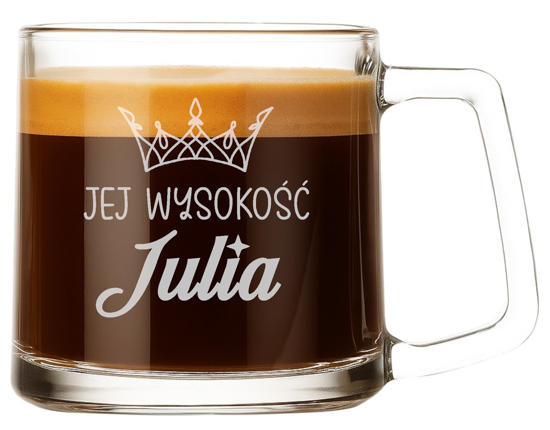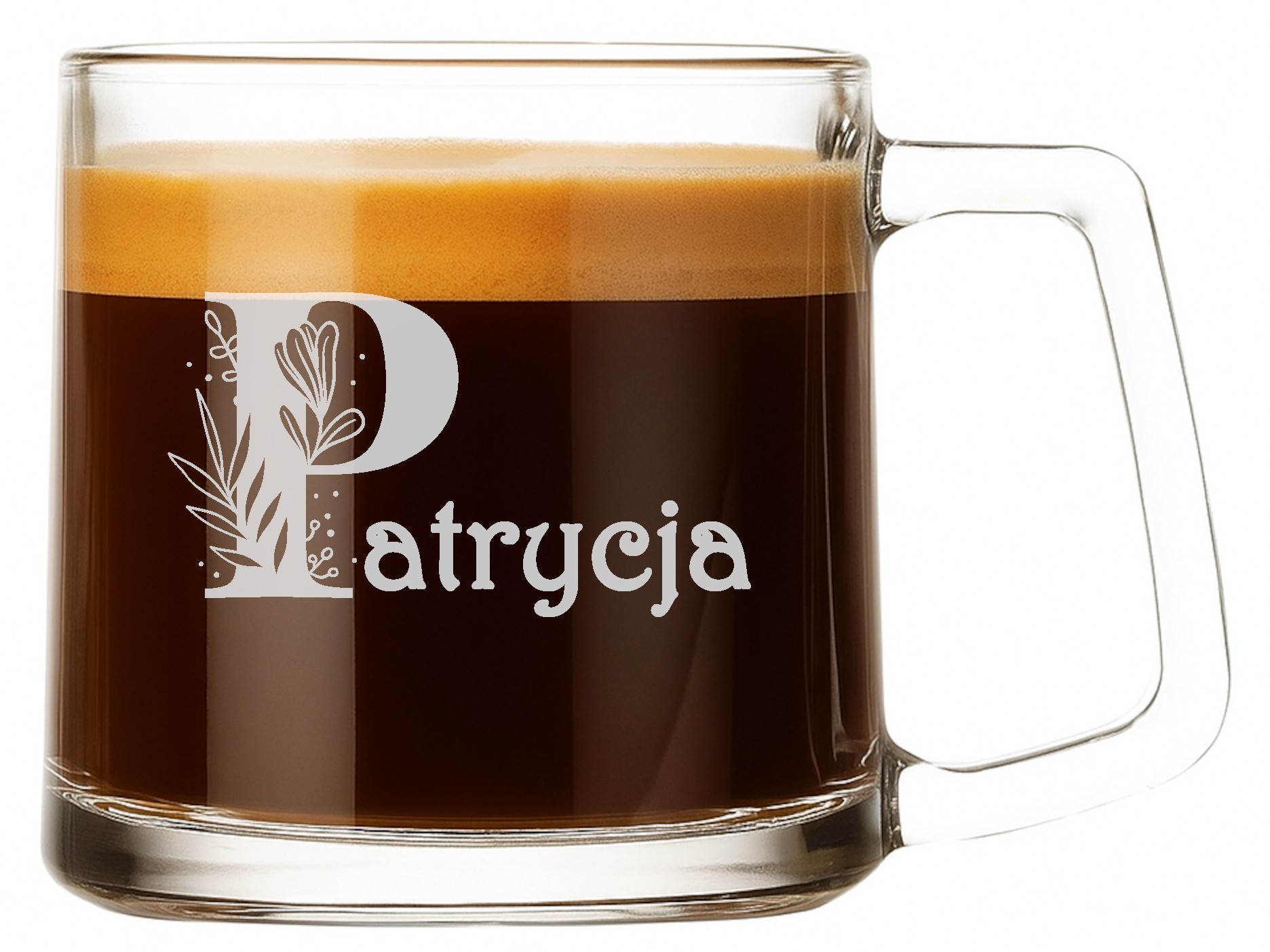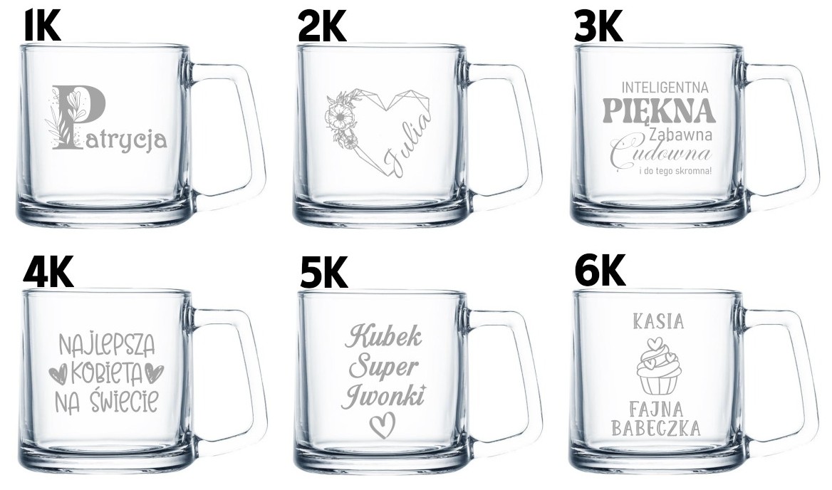 Kubek wykonany jest z wysokiej jakości szkła, odpornego na zarysowania i stłuczenia, a jego krystaliczna przejrzystość pięknie eksponuje precyzyjny grawer. Klasyczny, minimalistyczny design sprawia, że doskonale pasuje do każdej kuchni, sypialni czy biura – zawsze blisko serca.