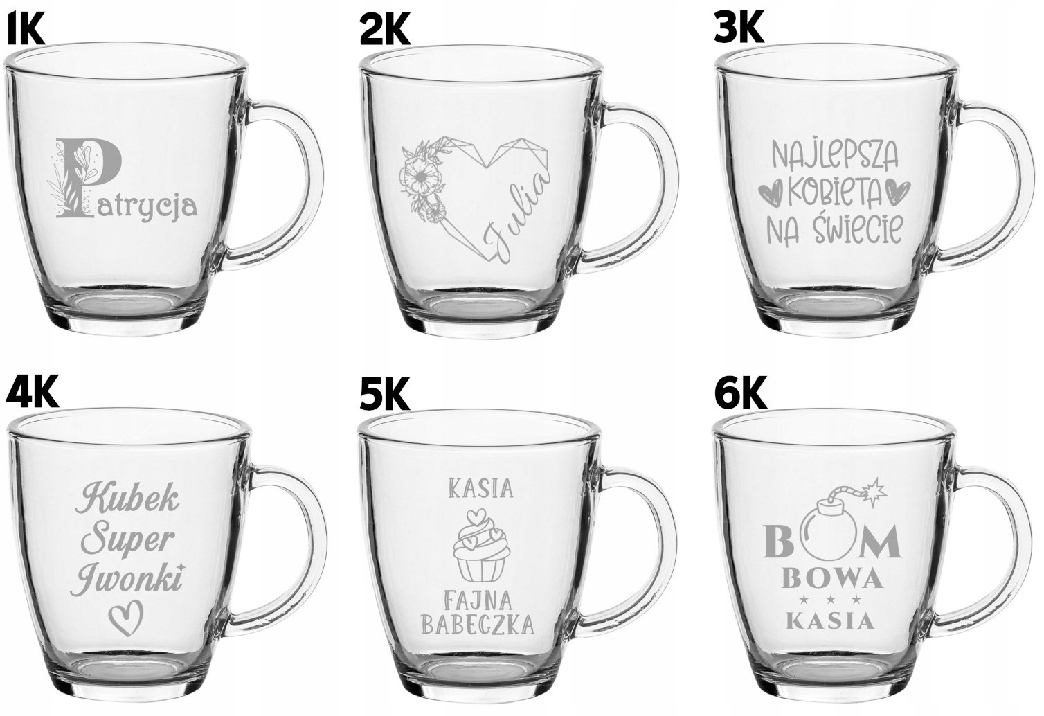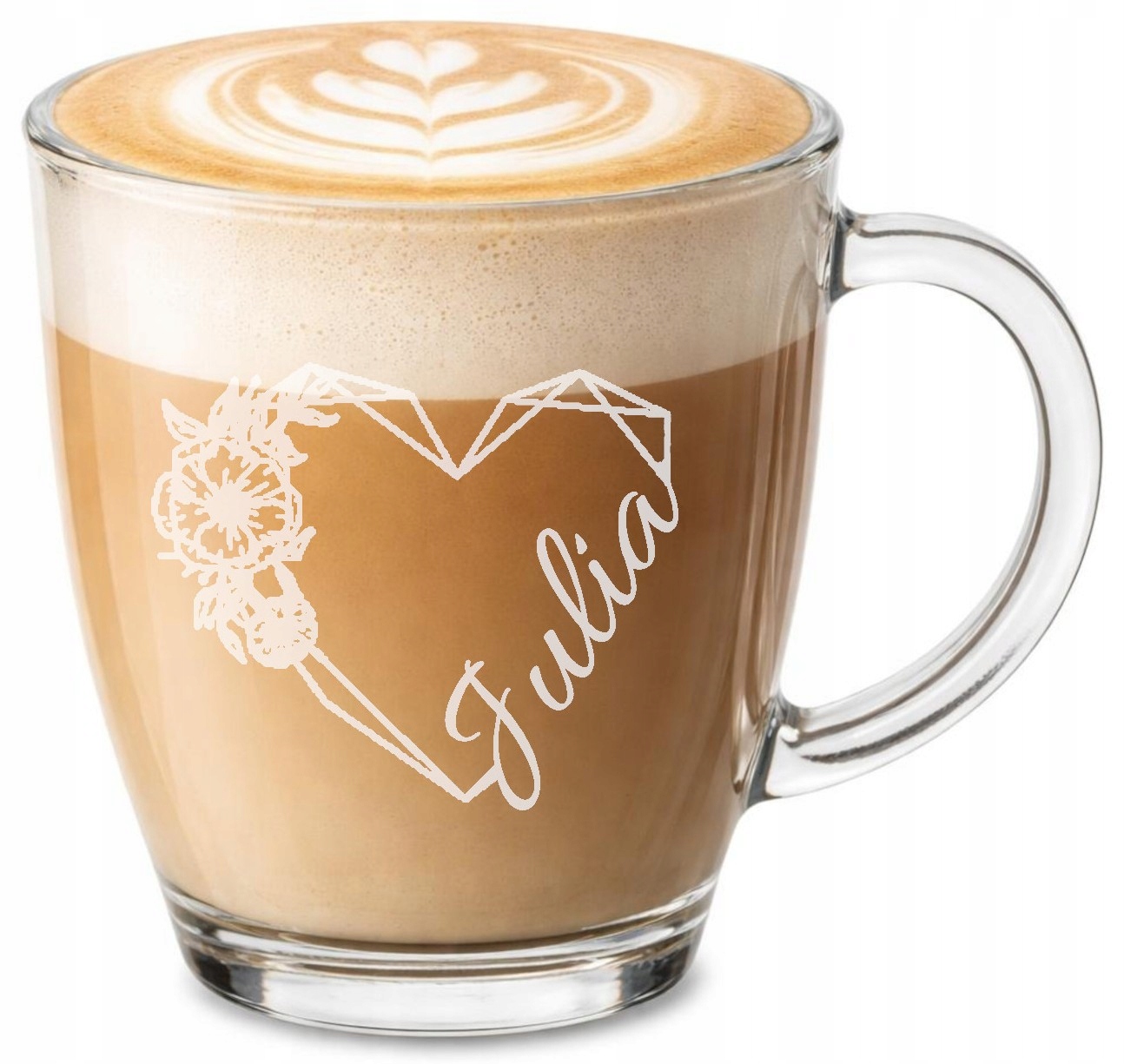 Kubek wykonany jest z wysokiej jakości szkła, odpornego na zarysowania i stłuczenia, a jego krystaliczna przejrzystość pięknie eksponuje precyzyjny grawer. Klasyczny, minimalistyczny design sprawia, że doskonale pasuje do każdej kuchni, sypialni czy biura – zawsze blisko serca.