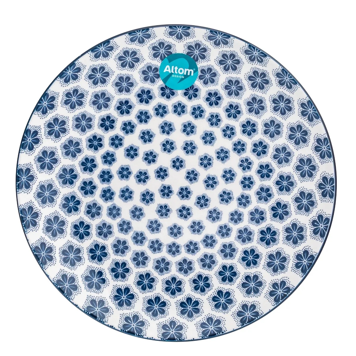 Nowa kolekcja Arabeska to ukłon w stronę ponadczasowej elegancji i dekoracyjnych detali inspirowanych klasycznym wzornictwem. Deserowy talerz porcelanowy o średnicy 20 cm zachwyca harmonijnym, rytmicznym motywem w odcieniach głębokiego granatu, który pięknie kontrastuje z jasnym tłem. Subtelny ornament przyciąga wzrok, ale nie dominuje – dzięki czemu deser, ciasto czy owocowa przekąska zawsze pozostają w centrum uwagi.