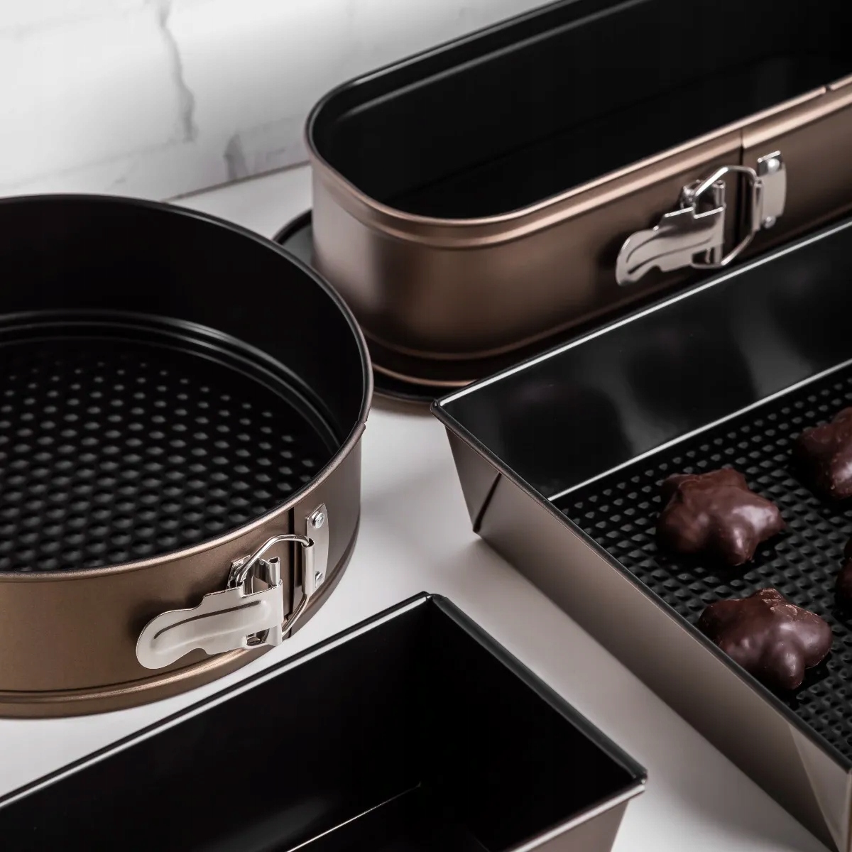 Tortownica z kolekcji Valdinox Aurum w eleganckim kolorze macca to połączenie stylu i funkcjonalności. Idealna do pieczenia ulubionych wypieków - od serników po klasyczne biszkopty. Ma odpinany rant, który ułatwia wyjmowanie ciasta, oraz powłokę non-stick, dzięki której nic nie przywiera i łatwo utrzymać ją w czystości. Piękna, praktyczna i spójna z całą linią Aurum. A ty już wiesz co razem upieczecie?