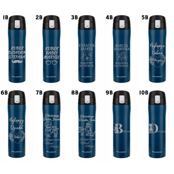 Kubek termiczny jest personalizowany według życzeń klienta – grawer może zawierać imię, dedykację, logo firmy lub wybrany gotowy tekst z naszych projektów. Idealny personalizowany prezent dla bliskiej osoby z okazji urodzin, imienin, na Dzień Nauczyciela, Dzień Matki, Dzień Kobiet, Dzień Babci i Dziadka ale również na Walentynki. Pojemność poniżej 0,5l jest optymalna dla dorosłych i dla dzieci.