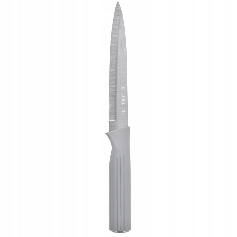 Zestaw łączy funkcjonalność z estetyką – elegancki szary blok z ryflowaniem świetnie prezentuje się na blacie, a wysokiej jakości noże ze stali nierdzewnej zapewniają komfort krojenia.