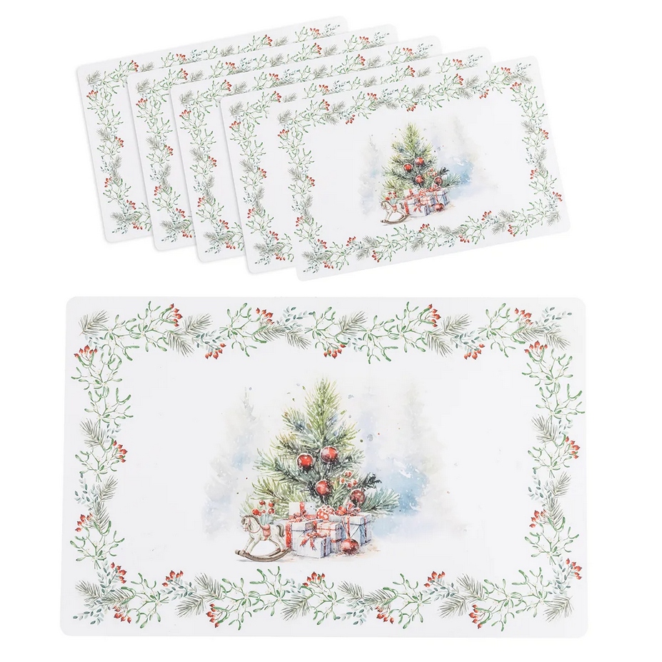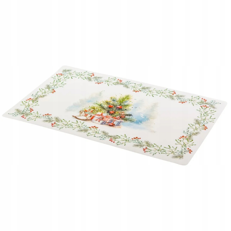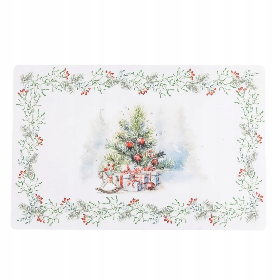 Dekoracyjna i niezwykle praktyczna mata stołowa prostokątna Magia Świąt 28x43 cm. Wykonana z tworzywa sztucznego nowoczesna mata jest niezwykle łatwa w utrzymaniu w czystości.